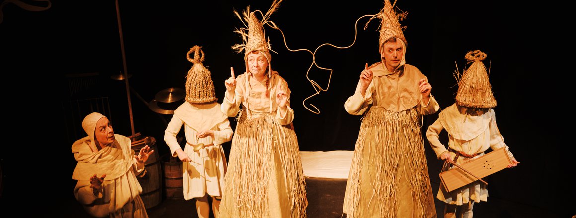 Pictured: The company of ADRIFT | A MEDIEVAL WAYWARD FOLLY (2023) devised by Happenstance Theater under the co-direction of Mark Jaster and Sabrina Mandell. Presented by Happenstance Theater. Photo by Leah Huete.